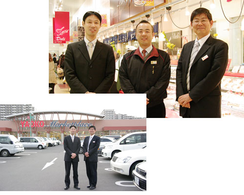 ― 馬場事務所に対して要望があったらお聞かせください。 大変満足していますので特にないのですが、あえて要望するとしたら、ダメなものは「それダメ!」とはっきり言ってください、ということでしょうか。 商標取得の可能性がゼロではないときなど、「それはちょっと難しいのではないでしょうか」と言ってくださるのですが、そういうときは「ダメ」と言ってもらった方がいいですね。 弊社は今後の長期目標として、1都6県に500店舗展開、売上高1兆円を目指しています。短期目標としては圏央道の内側、神奈川や東京都の西部に出店していきます。この2月には青梅市に開店しました。 これからは激戦区に出店していきますし、権利関係に詳しい企業さんが出店されていると思いますので、これからも今まで以上のパートナーシップをよろしくお願いいたします ![]() (写真上) 弊事務所所長 馬場(左)、川越南古谷店店長 神田氏(中央)、総務部城内氏(右) (写真下) 南古谷店駐車場にて城内氏(右)と。平日でも売上の多い南古谷店は平日昼間にもかかわらず駐車場はほぼ満車である お忙しい中、貴重なお話をありがとうございました。 ※ 株式会社ヤオコーのWebサイト ※ 取材日時 2010年2月 |