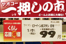 ![]() 上:登録商標「一押しの市」 下:登録商標「くらし応援得価」 今まではそれぞれの登録商標の1点ごとのファイルはあったのですが、一覧を作成していませんでした。馬場さんに一覧を作成していただいて商標の全体が見えるようになりました。全体が見えることで、取る必要のある商標が見えてきました。 一例でいうと、全店で行っている販促のタイトルを登録していないことがわかりました。毎月1日開催の「一押しの市」、15日開催の「中押しの市」という店内にのぼりを立てて大々的に行っている販促です。こういった申請漏れの商標をピックアップして申請しました。