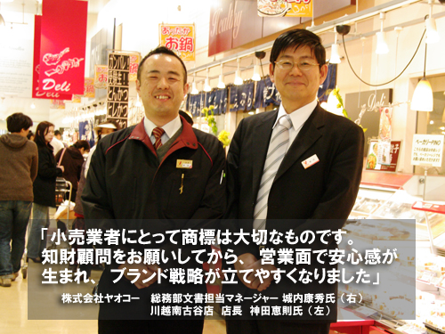 ― 評価点の3番目、「ブランディングを考えた知財戦略に視点が広がったこと」とはどのようなことでしょうか? これも、馬場さんにお願いしてよかった点ですが、 「ヤオコーのブランディングを考えて」と言ってくれたことです。そういう視点を持っていませんでしたので、知財戦略をブランディングという大きな観点で一緒に考えていけるパートナーができたことがうれしかったです。